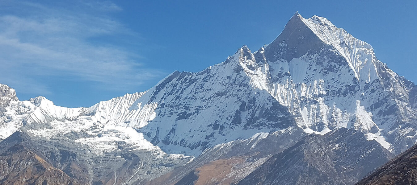 Annapurna 8091m is the thirteen highest mountain in the world. Annapurna is a Sanskrit name which literally means “full of food” but is normally translated as Goddess of the Harvests. This mountain section is a 55 km-long massif bounded by the Kali Gandaki Gorge on the west, the Marshyangdi River on the north and east, and Pokhara Valley on the south. The four summits with the entire massif of Annapurna form the northern barrier of Pokhara Valley. The main summit stands to the west of the Annapurna Sanctuary. The other major peaks on the Annapurna range are Annapurna II (7937 m), Annapurna III (7555 m), Annapurna IV (7525 m), Gangapurna (7455 m) and Annapurna South (7219 m).