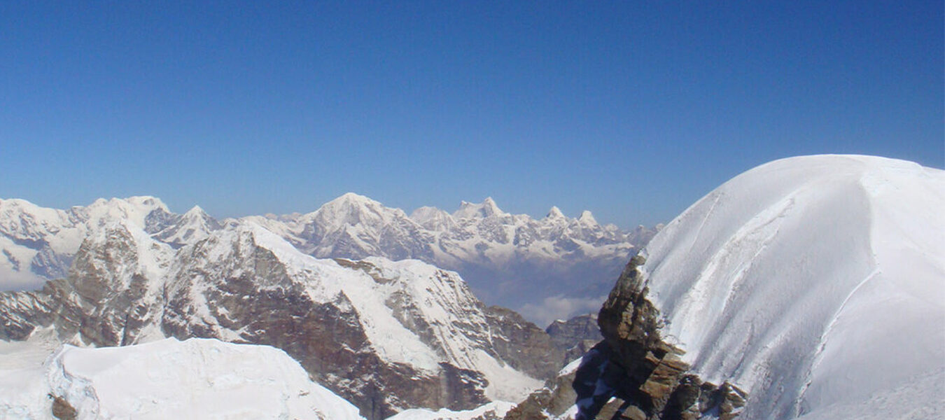 Mera Peak Climbing 6476 m 21 Days, Mera Peak is the uppermost trekking peak in Nepal at above 6000m. The sight from the top is one of the most excellent in the Himalaya with five 8,000m peaks observable: Everest, Lhotse, Cho Oyu, Makalu and Kanchenjunga.
